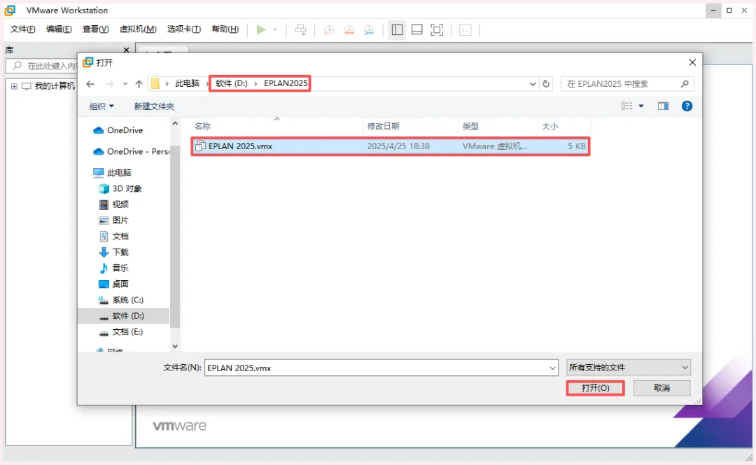 17.打开步骤3您存放的【EPLAN2025】文件夹并选中【EPLAN2025】,点击【打开】。