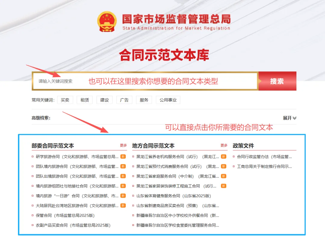 它就是「国家市场监督管理总局官网」——重点是官方认证,没有乱七八糟的小广告,各类合同示范文本全部免费下载,还支持WORD和PDF两种常用格式,不用费心找资源、不用花钱买模板,省心又靠谱!
