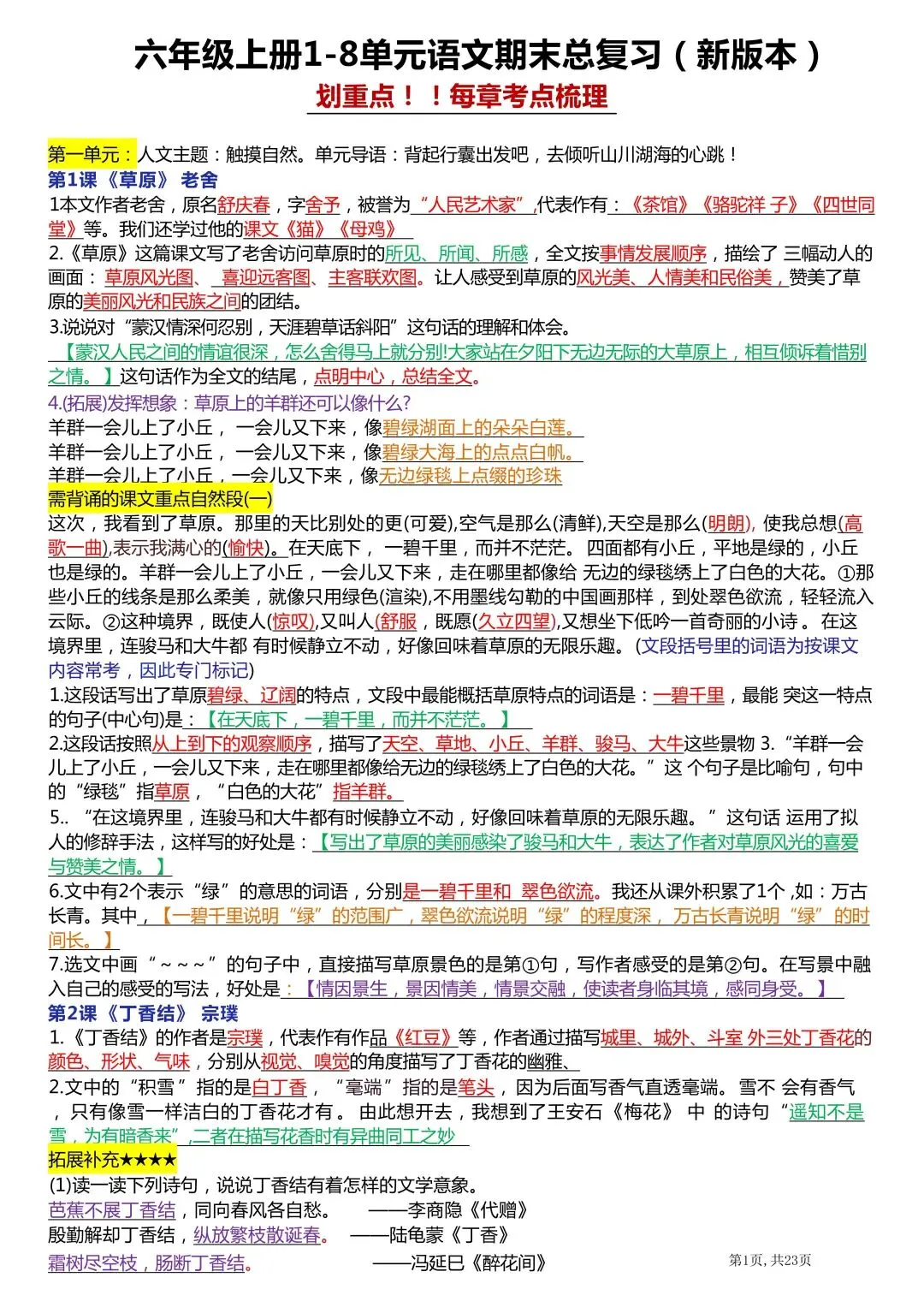 点击下方『阅读原文』六年级上册语文资料合集