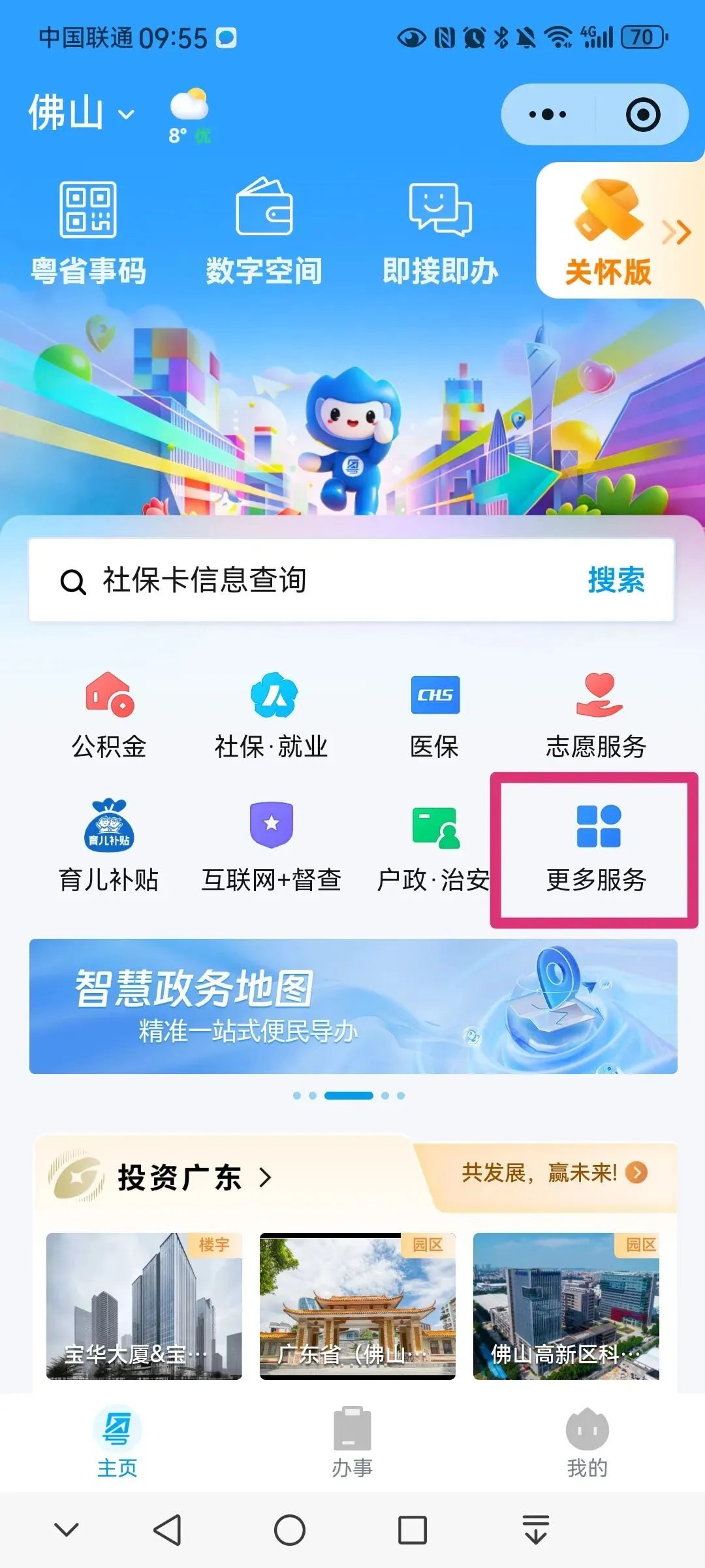 在个人微信打开“粤省事”小程序,按照图示操作。