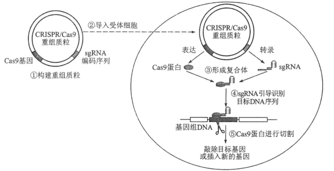 (1)过程①中,为构建CRISPR/Cas9重组质粒,需对含有特定sgRNA编码序列的DNA进行酶切处理,然后将其插入到经相同酶切处理过的质粒上,插入时所需要的酶是____________。