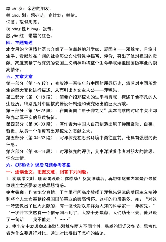 七下语文每课知识点梳理-可免费下载打印,文末有打印方式