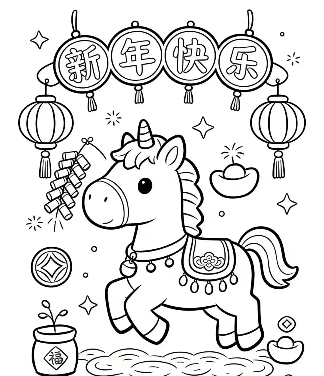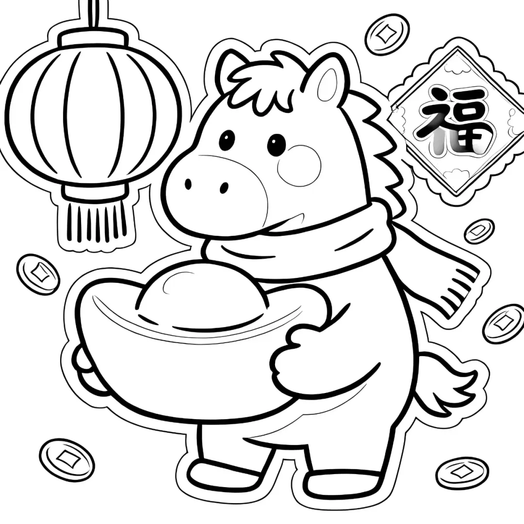 (马年简笔画线稿涂色)