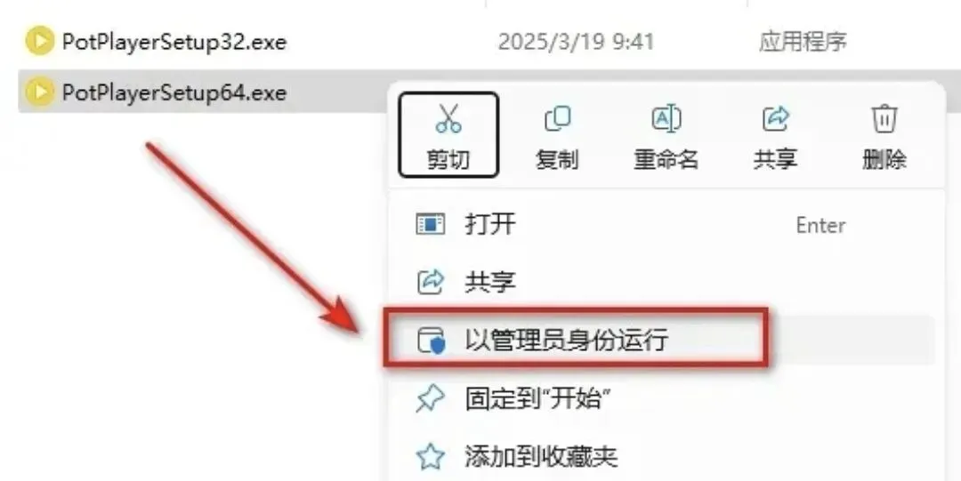 1. 解压文件 → 右键安装包 → 选择【以管理员身份运行】