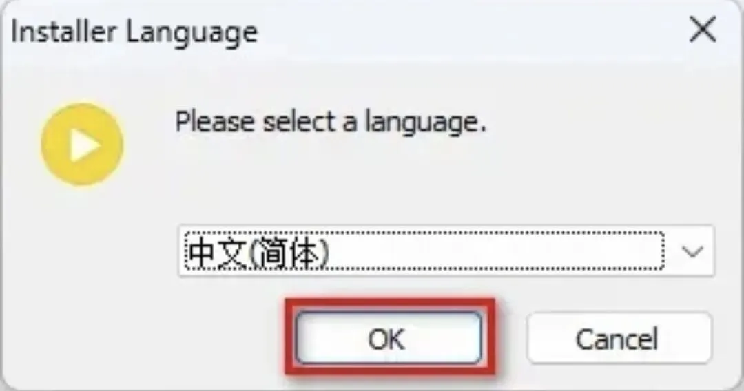 2. 选择中文(简体) → 点击【OK】