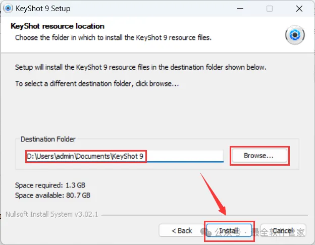 8、可自定义更改软件安装位置,这里小编选择安装在D盘;再点击【Install】