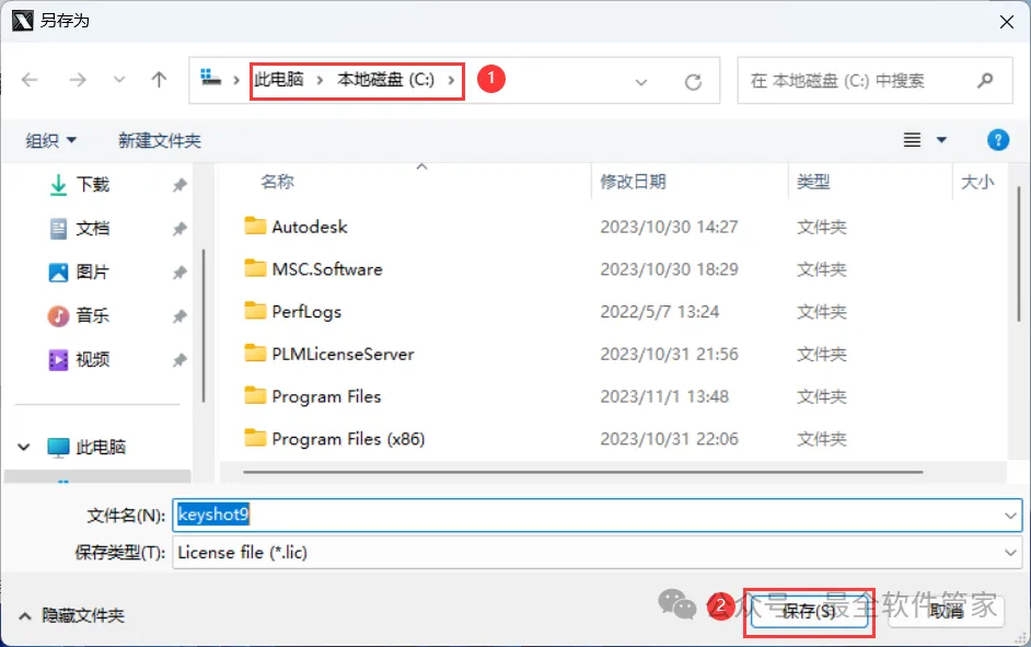 22、选择路径到C盘,找到并选中【Keyshot9】程序,再点击【打开】