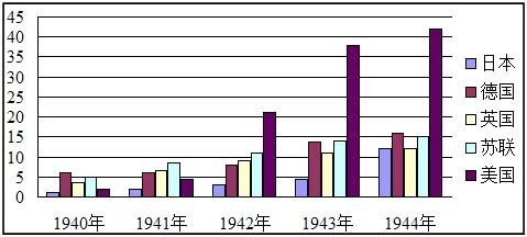 14. 下图为二战期间五国军火生产情况,其中变化反映出