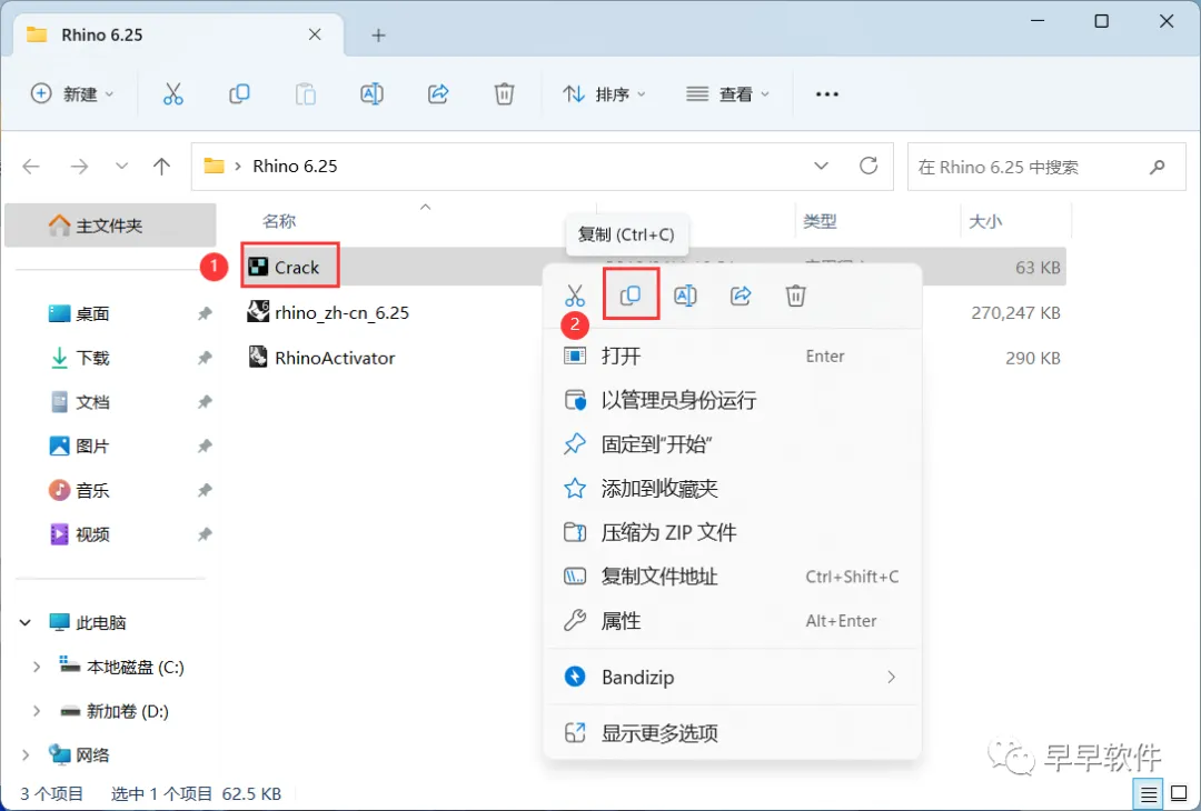 8、回到Rhino 6.25文件夹,找到【Crack】程序,再右键点击【复制按钮】