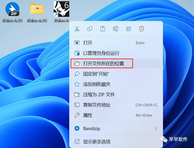9、回到桌面,右键桌面上的【Rhino 6软件图标】,点击【打开文件所在的位置】