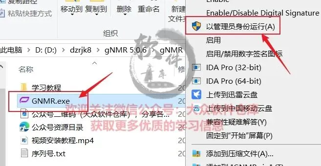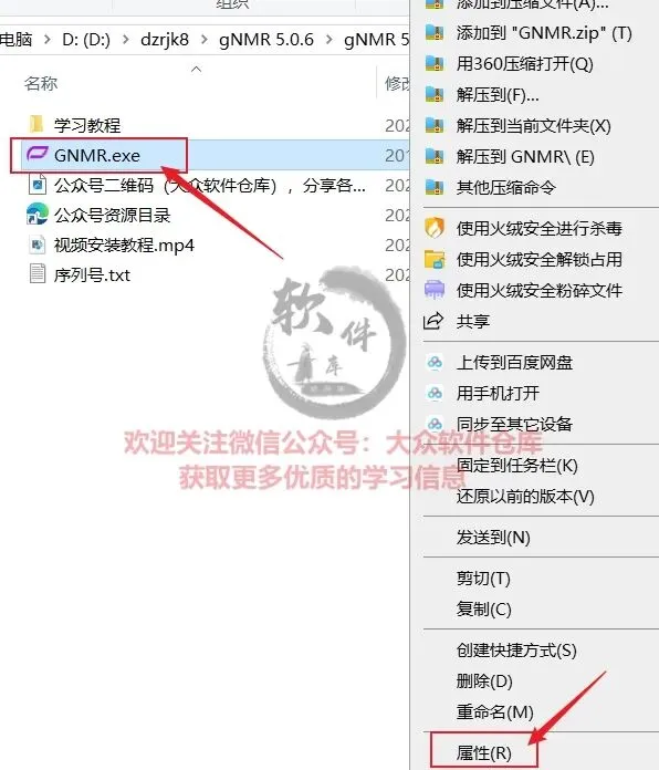 1.把资源从网盘下载到电脑上面并右键gNMR 5.0.6.exe压缩包选择解压到当前文件夹;