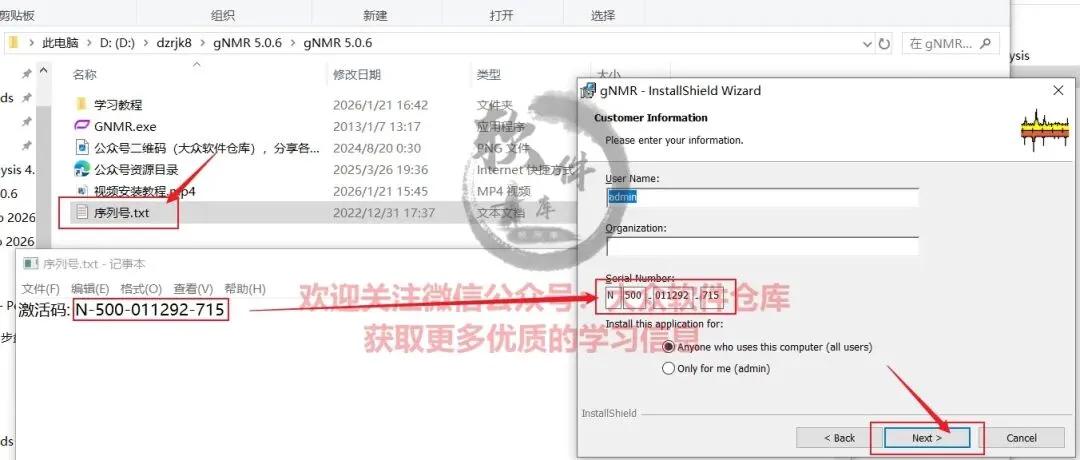 10.打开序列号文本,将激活码粘贴至软件界面中,点击Next;