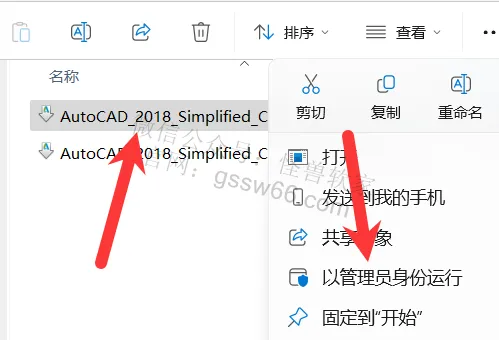 04,找到并选中“AutoCAD_2018_Simplified_Chinese_Win_64bit_dlm_001_002.sfx.exe”安装程序,点击鼠标右键,点击“以管理员身份运行”