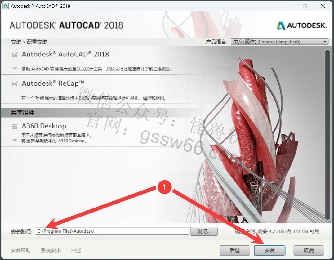 10,无须更改安装位置,点击“安装”,快速更改安装位置到D盘,把安装路径首字母C改为D即可(安装路径不要出现中文),点击“安装”。本例安装在D盘。