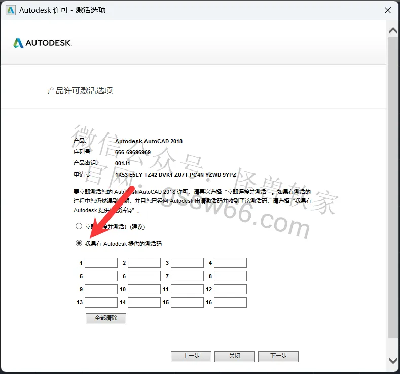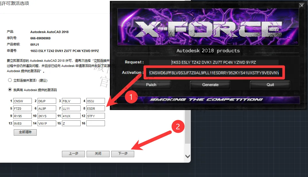 26,把激活码复制并粘贴到CAD激活码框内,点击“下一步”