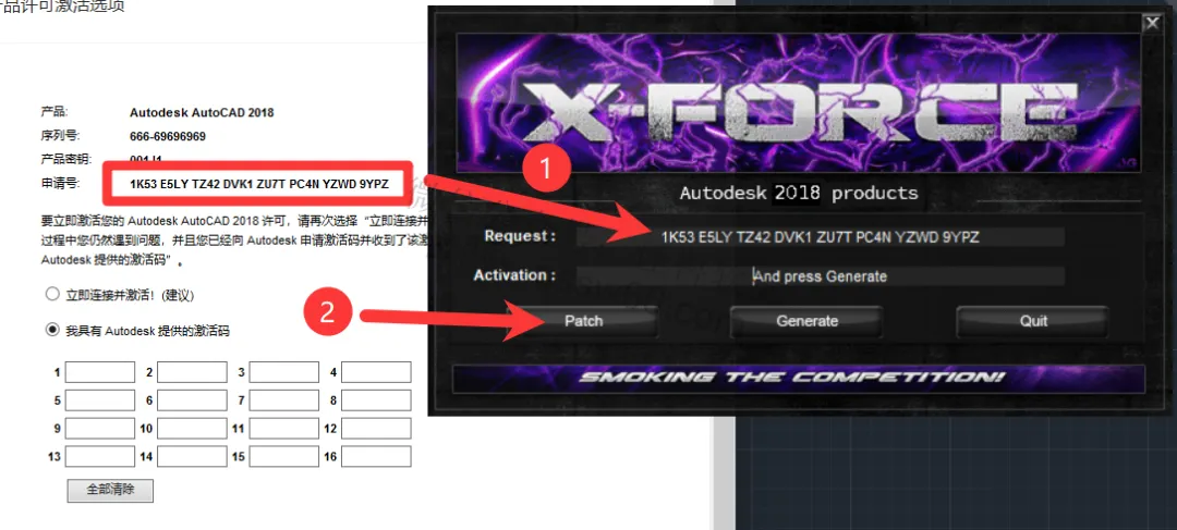 23,把CAD申请号复制并粘贴到注册机Request处,点击“Patch”