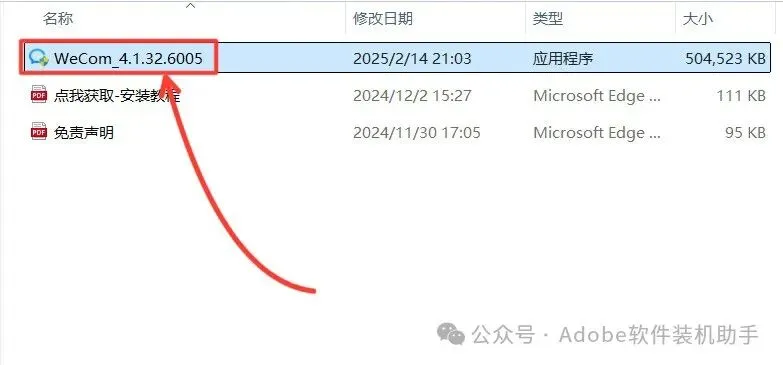 3. 双击运行【WeCom_4.1.32.6005】。