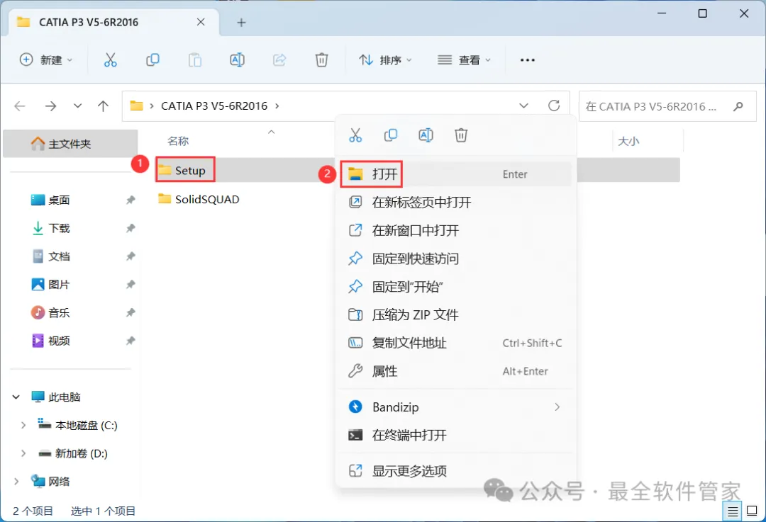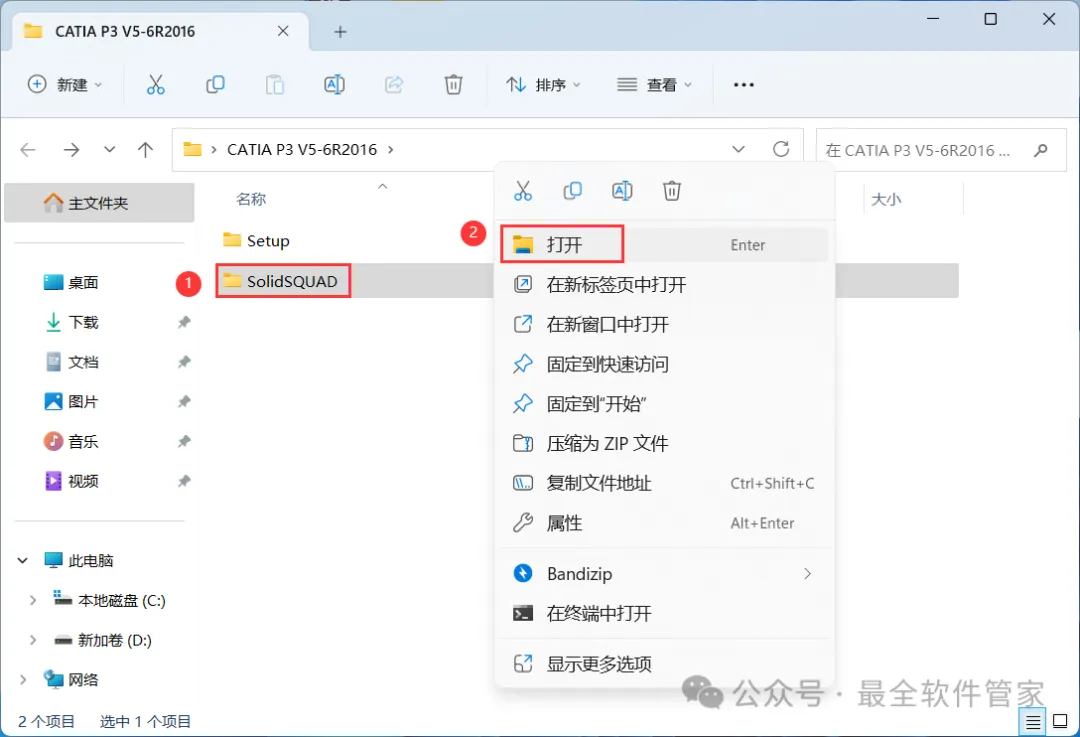 [软件名称]:CATIA P3 V5-6R2016[不限速下载]:免费获取百度网盘不限速下载工具。公众号内回复:不限速[注意事项]:安装前请关闭网络、杀毒软件和防火墙,否则易安装失败。公众号内回复:1[解压软件]:小编用的解压软件是Bandizip,获取Bandizip软件安装包。公众号内回复:21、下载CATIA P3 V5-6R2016软件安装包到电脑上,右键选择【解压到CATIA P3 V5-6R2016\】4、找到【setup】应用程序,右键选择【以管理员身份运行】它 6、软件默认安装在C盘,可自定义更改软件安装位置,这里小编选择安装在D盘;点击【下一步】 18、回到CATIA P3 V5-6R2016文件夹,找到【SolidSQUAD】文件夹,右键【打开】它19、找到【DSL Installer】应用程序,右键选择【以管理员身份运行】它24、回到桌面,右键桌面上的【CATIA P3 V5-6R2016软件图标】,点击【打开】 26、勾选【可用的配置或产品列表】,取消勾选【DIC-CATIA…】、【ED2-CATIA…】和【I3D-CATIA…】,再点击【确定】28、以上就是CATIA P3 V5-6R2016软件安装的全过程,要是对你有帮助的话,请为小编点个赞! 免责声明:软件资源均来源于网络,仅供用户交流学习与研究使用,版权归属原版权方所有,版权争议与本公众号无关,用户本人下载后不能用作商业或非法用途,否则后果均由用户承担责任;如果您访问和下载此文件,表示您同意只将此软件用于参考、学习而非其他用途,否则一切后果请您自行承担,请于下载后24小时内删除,不允许用于商业用途,否则法律问题自行承担。如果您喜欢该软件,请支持正版软件,购买注册,得到更好的正版服务。
