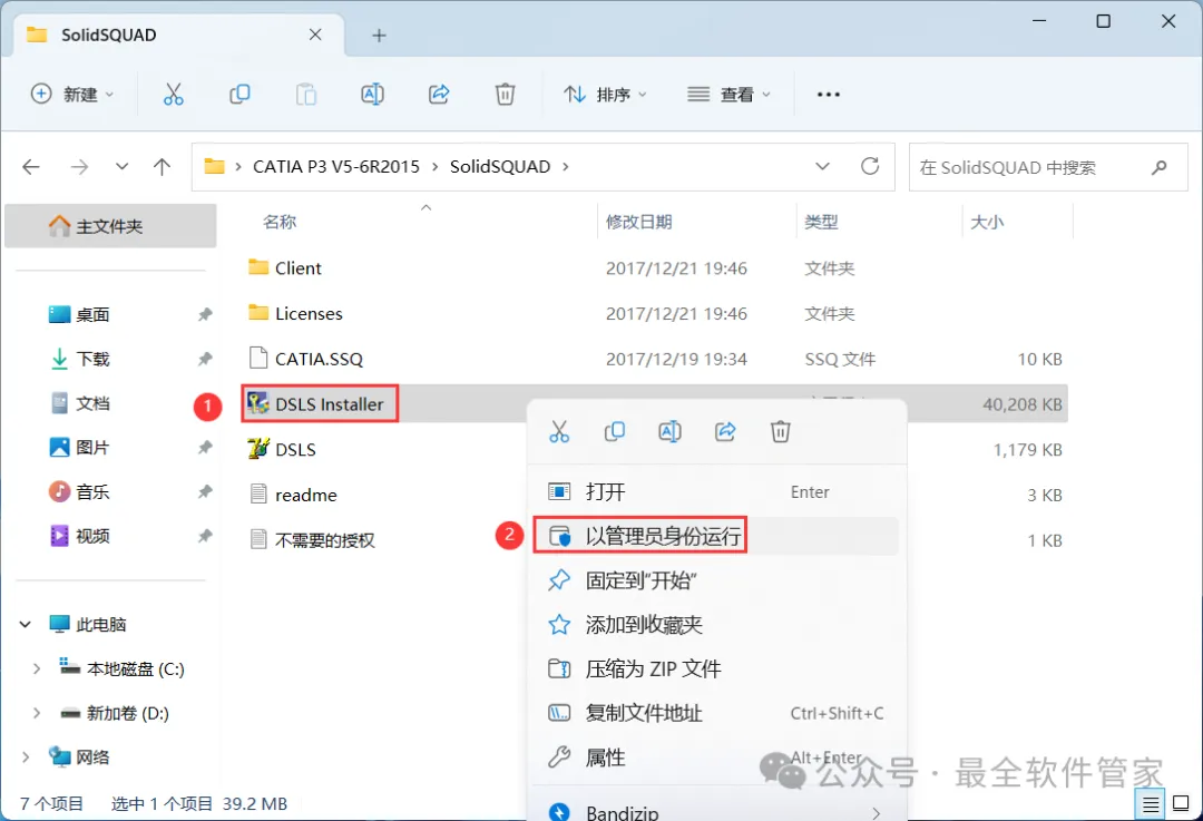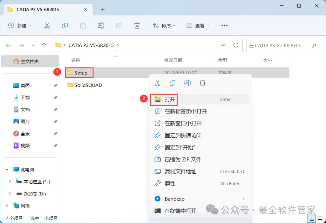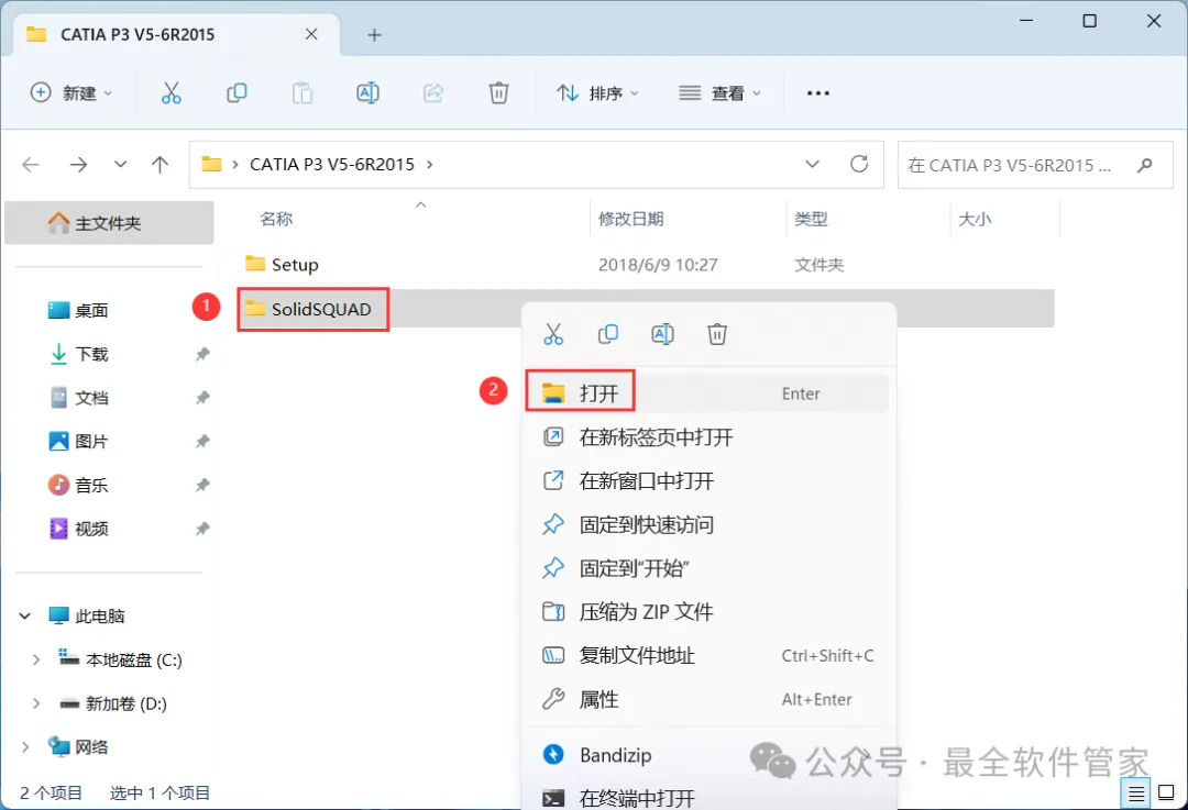 [软件名称]:CATIA P3 V5-6R2015[不限速下载]:免费获取百度网盘不限速下载工具。公众号内回复:不限速[注意事项]:安装前请关闭网络、杀毒软件和防火墙,否则易安装失败。公众号内回复:1[解压软件]:小编用的解压软件是Bandizip,获取Bandizip软件安装包。公众号内回复:21、下载CATIA P3 V5-6R2015软件安装包到电脑上,右键选择【解压到CATIA P3 V5-6R2015\】4、找到【setup】应用程序,右键选择【以管理员身份运行】它 6、软件默认安装在C盘,可自定义更改软件安装位置,这里小编选择安装在D盘;点击【下一步】 18、回到CATIA P3 V5-6R2015文件夹,找到【SolidSQUAD】文件夹,右键【打开】它19、找到【DSLS Installer】应用程序,右键选择【以管理员身份运行】它24、回到桌面,右键桌面上的【CATIA P3 V5-6R2015软件图标】,点击【打开】26、勾选【可用的配置或产品列表】,取消勾选【DIC-CATIA…】、【ED2-CATIA…】和【I3D-CATIA…】,再点击【确定】 28、以上就是CATIA P3 V5-6R2015软件安装的全过程,要是对你有帮助的话,请为小编点个赞! 免责声明:软件资源均来源于网络,仅供用户交流学习与研究使用,版权归属原版权方所有,版权争议与本公众号无关,用户本人下载后不能用作商业或非法用途,否则后果均由用户承担责任;如果您访问和下载此文件,表示您同意只将此软件用于参考、学习而非其他用途,否则一切后果请您自行承担,请于下载后24小时内删除,不允许用于商业用途,否则法律问题自行承担。如果您喜欢该软件,请支持正版软件,购买注册,得到更好的正版服务。
