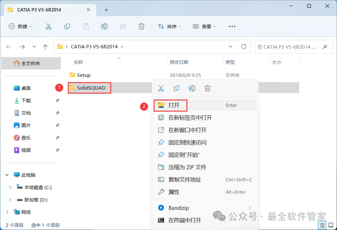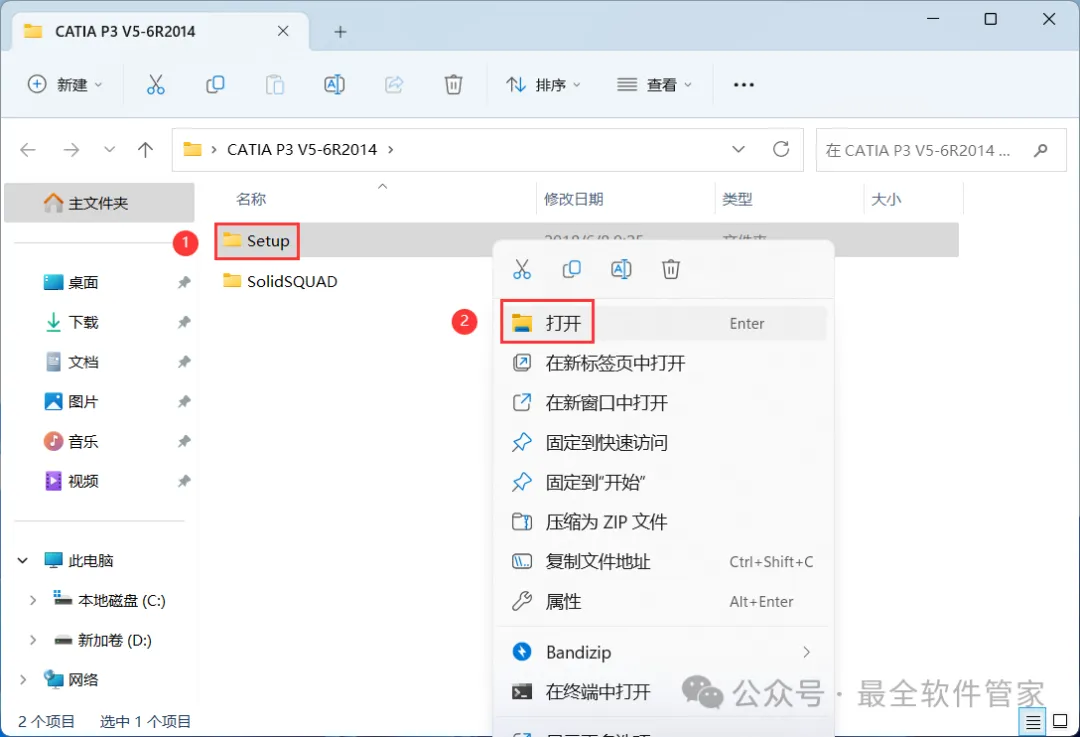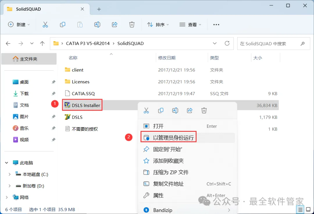 [软件名称]:CATIA P3 V5-6R2014[不限速下载]:免费获取百度网盘不限速下载工具。公众号内回复:不限速[注意事项]:安装前请关闭网络、杀毒软件和防火墙,否则易安装失败。公众号内回复:1[解压软件]:小编用的解压软件是Bandizip,获取Bandizip软件安装包。公众号内回复:21、下载CATIA P3 V5-6R2014软件安装包到电脑上,右键选择【解压到CATIA P3 V5-6R2014\】4、找到【setup】应用程序,右键选择【以管理员身份运行】它 6、软件默认安装在C盘,可自定义更改软件安装位置,这里小编选择安装在D盘;点击【下一步】 18、回到CATIA P3 V5-6R2014文件夹,找到【SolidSQUAD】文件夹,右键【打开】它19、找到【DSLS Installer】应用程序,右键选择【以管理员身份运行】它24、回到桌面,右键桌面上的【CATIA P3 V5-6R2014软件图标】,点击【打开】 26、勾选【可用的配置或产品列表】,取消勾选【DIC-CATIA…】、【ED2-CATIA…】和【I3D-CATIA…】,再点击【确定】28、以上就是CATIA P3 V5-6R2014软件安装的全过程,要是对你有帮助的话,请为小编点个赞! 免责声明:软件资源均来源于网络,仅供用户交流学习与研究使用,版权归属原版权方所有,版权争议与本公众号无关,用户本人下载后不能用作商业或非法用途,否则后果均由用户承担责任;如果您访问和下载此文件,表示您同意只将此软件用于参考、学习而非其他用途,否则一切后果请您自行承担,请于下载后24小时内删除,不允许用于商业用途,否则法律问题自行承担。如果您喜欢该软件,请支持正版软件,购买注册,得到更好的正版服务。