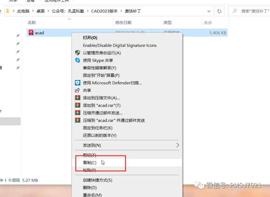 7、返回到安装包里,打开激活补丁,右击补丁选择复制;