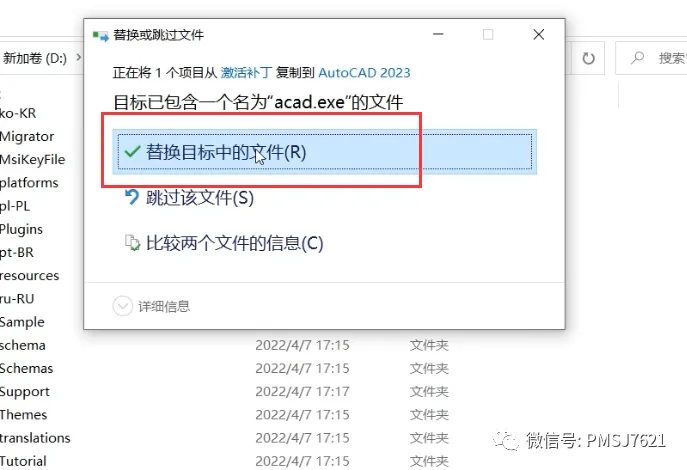 10、选择替换目标中的文件;