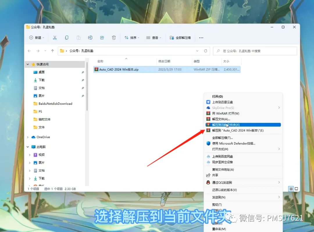 1、下载好的安装包,右键解压到当前文件夹;