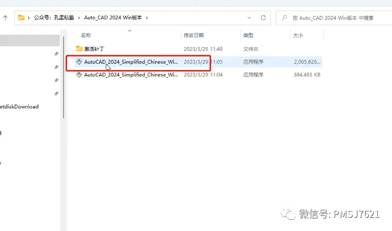 2、打开解压好的文件,选择第一个CAD2024程序,启动;