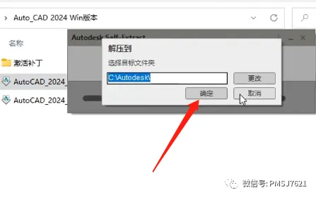 3、进行二次解压,点击确定;
