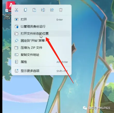 8、右击桌面的CAD启动图标,点击打开文件位置;