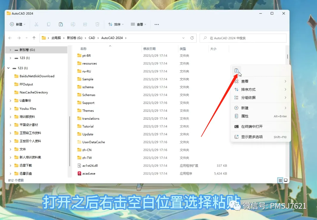 9、右击空白位置,选择粘贴;