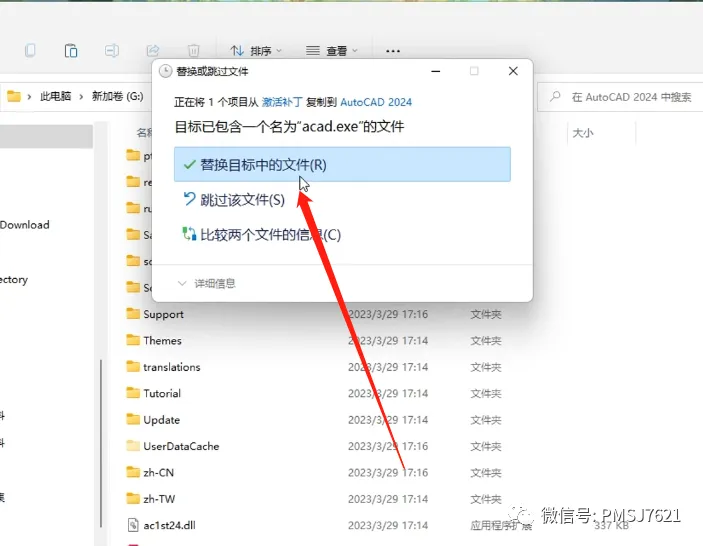 10、选择替换目标中的文件;