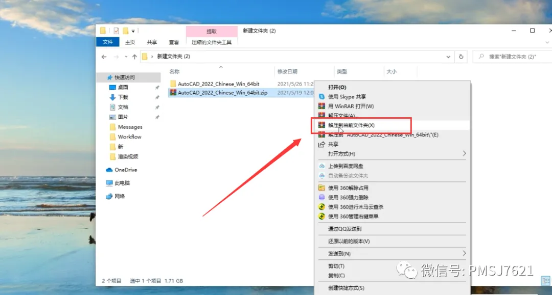 1、下载好的安装包右击解压出来,建议解压到当前文件夹,方便寻找;