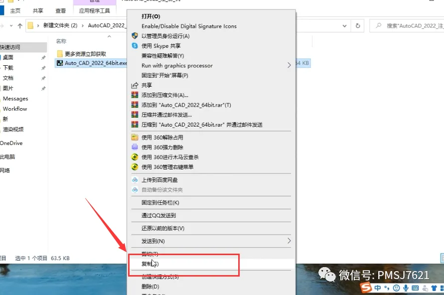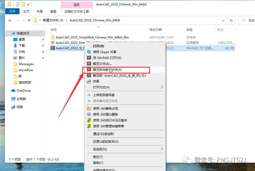 2、打开解压好的安装包,启动CAD2022的安装程序;3、进行二次解压,建议更改到当前文件夹,也是为了方便寻找;5、 出现用户协议的界面,点击我同意,然后下一步;10、返回到安装包,右击CAD注册机,选中解压到当前文件夹;12、在桌面找到CAD的启动程序,右击选择打开文件所在位置;14、打开粘贴进来的CAD注册机,最好右击以管理员身份运行;关注公众号回复 CAD 即可下载