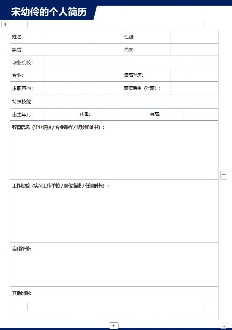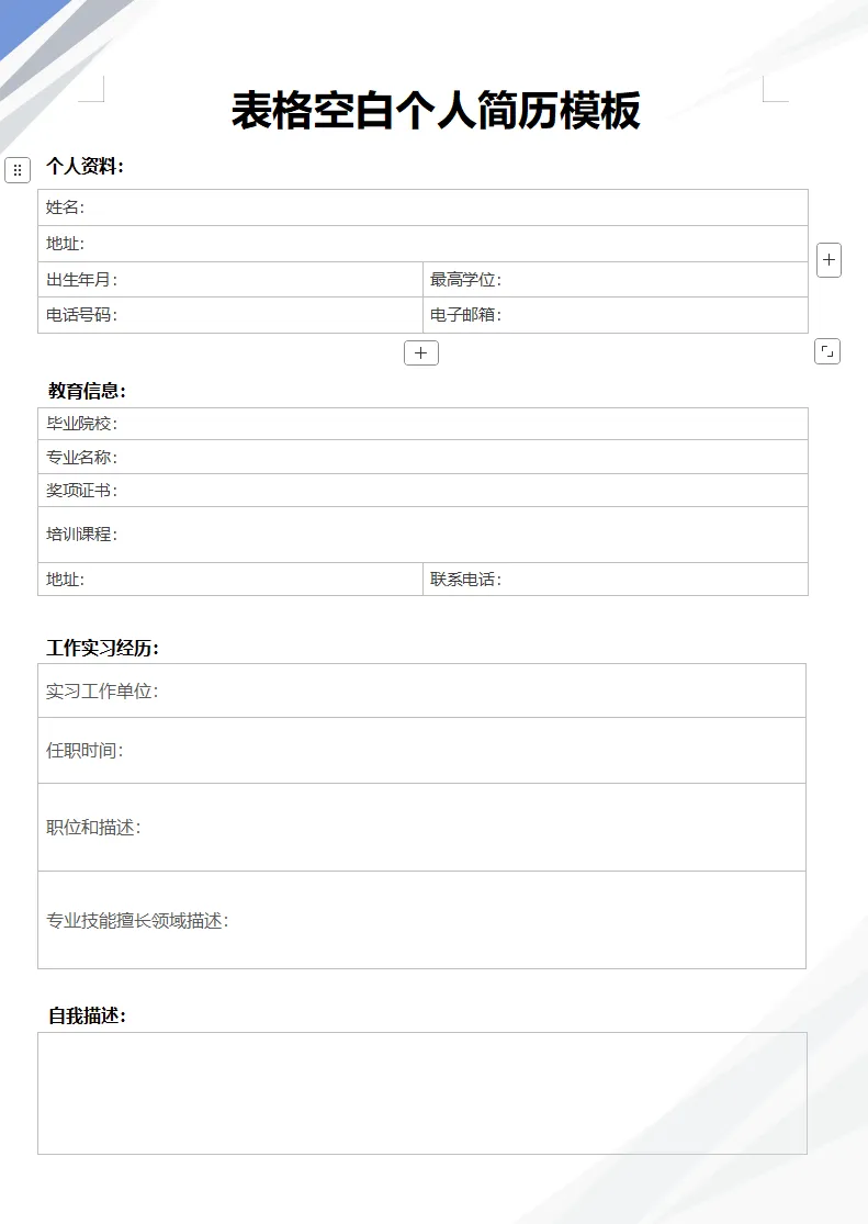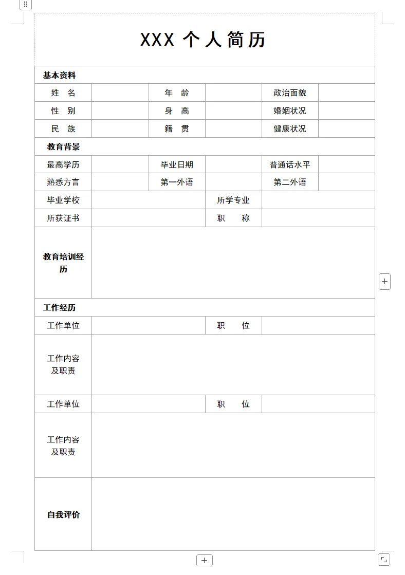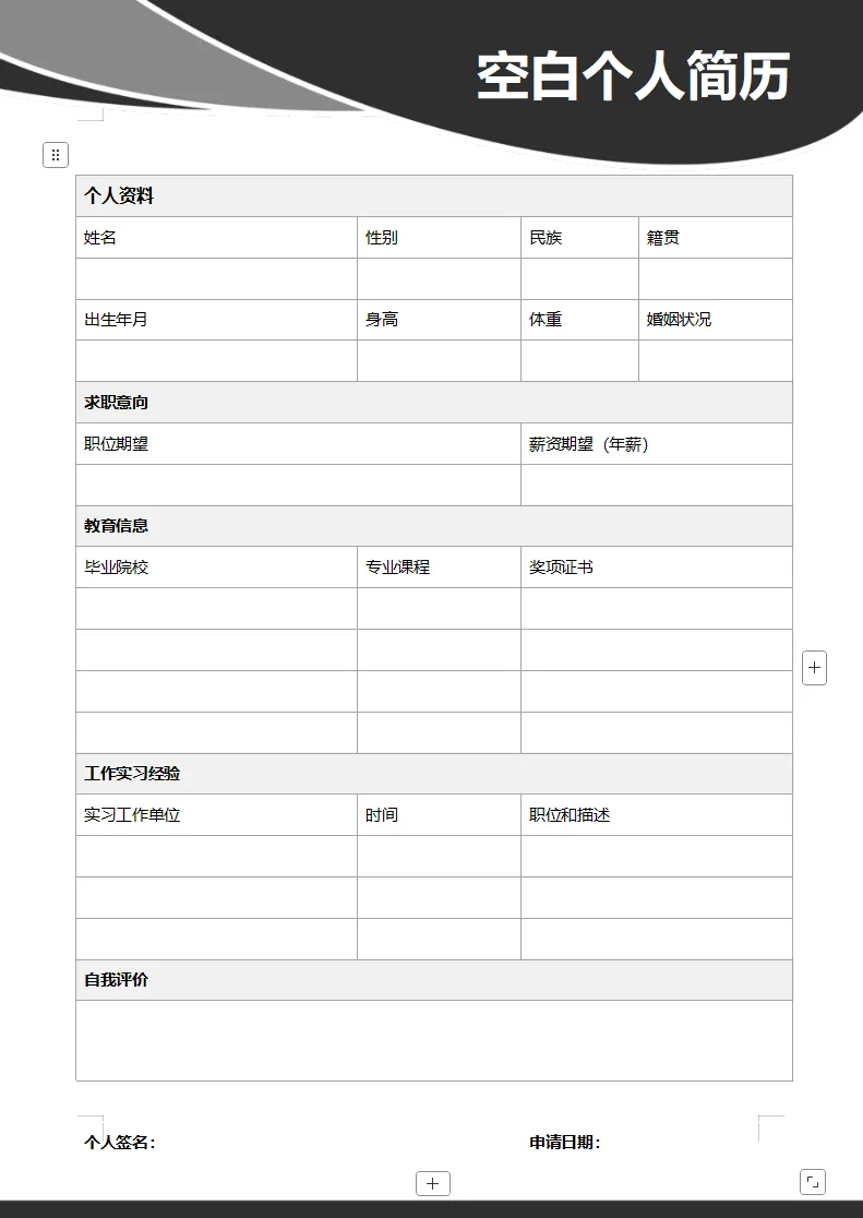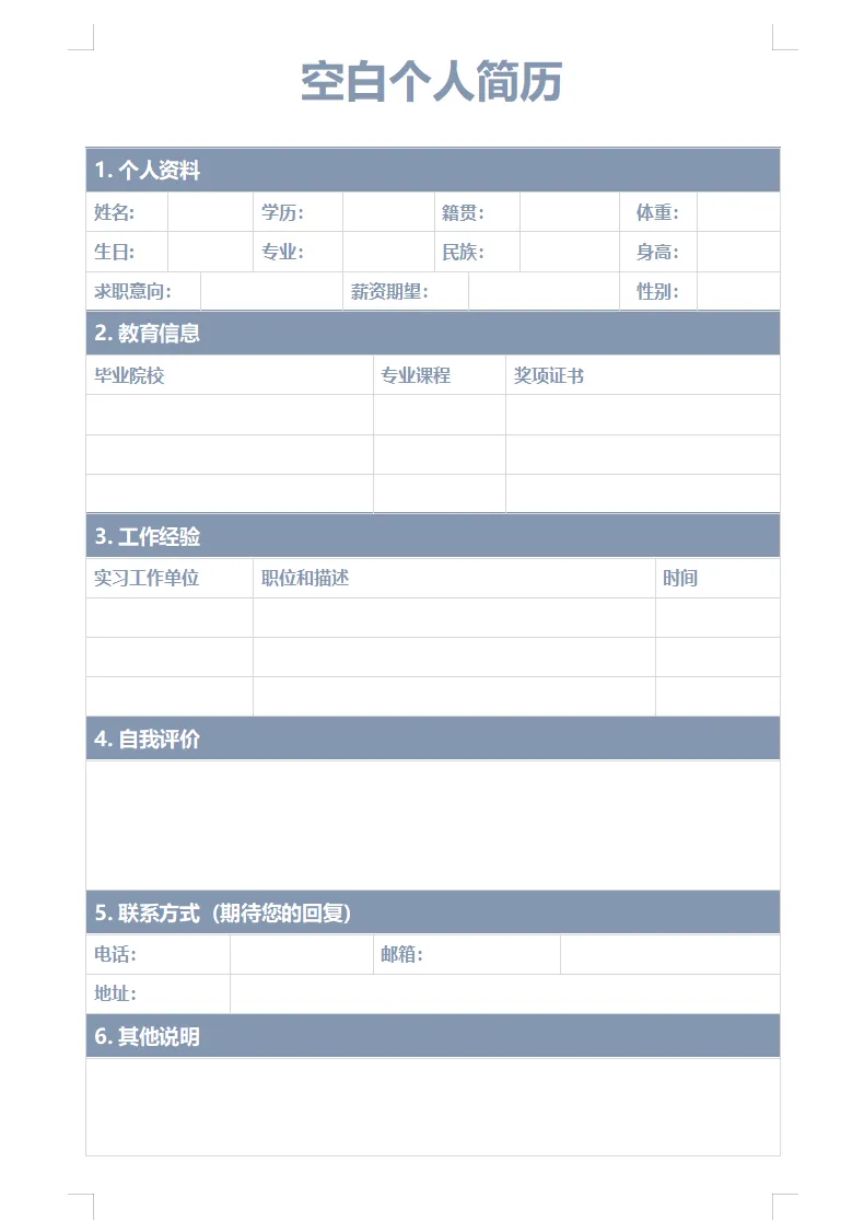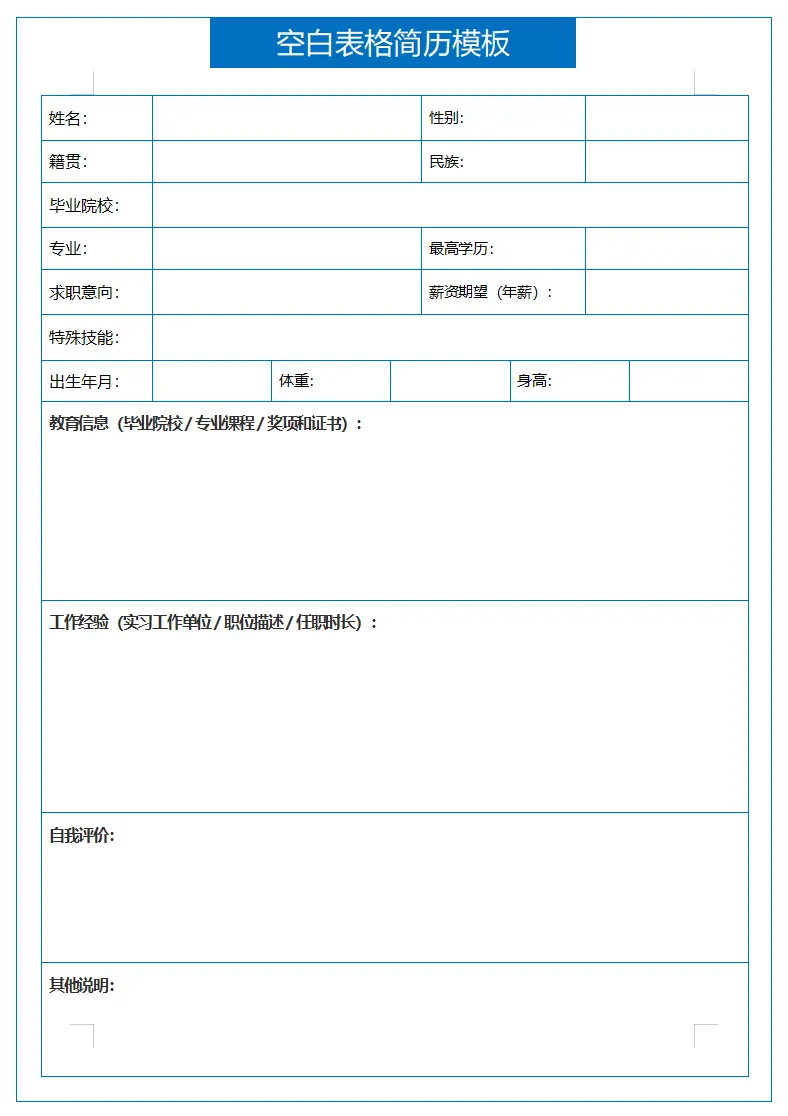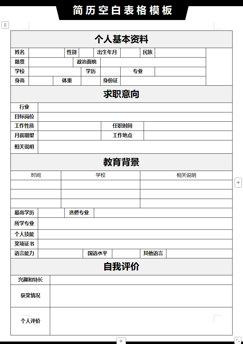 【免费下载】10套简约空白简历表格模板,Word可修改打印!