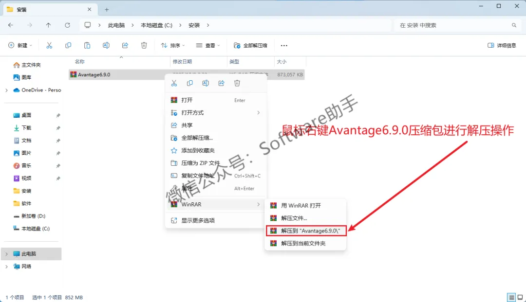 1.鼠标右击【Avantage6.9.0】压缩包,将它解压
