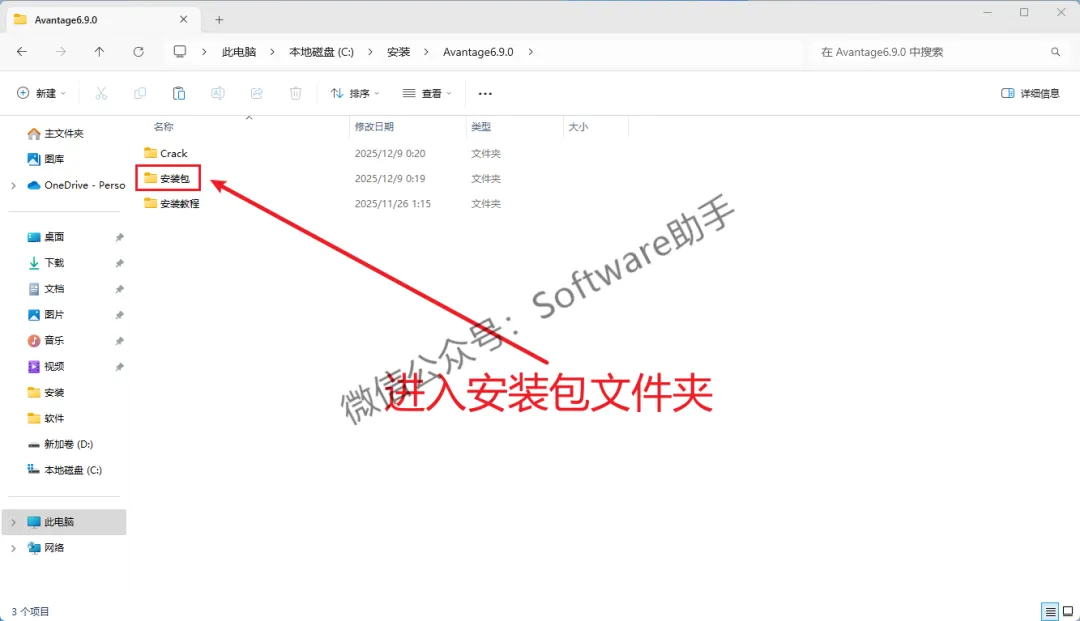2.进入解压好的文件夹里,双击打开【安装包】文件夹