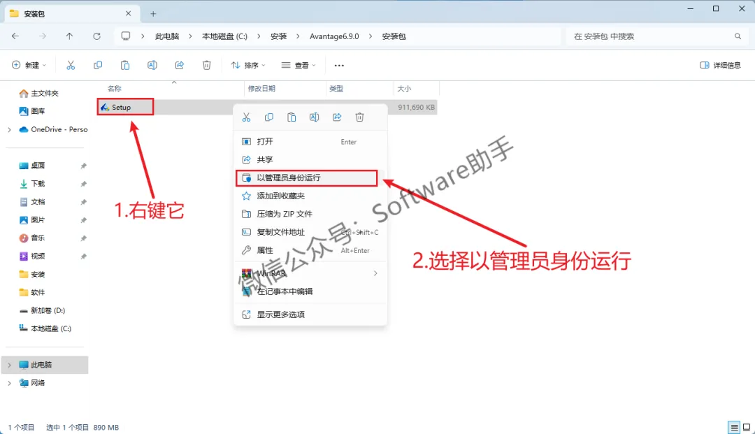 3.鼠标右键【Setup】,选择【以管理员身份运行】