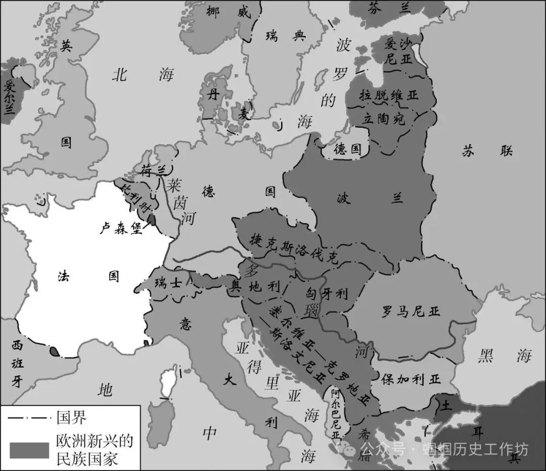 总之,一战后欧洲疆界领土发生巨变,大国关系进入了一个新阶段。
