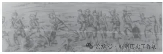 ①找和析:通过图名,可知图片主题是长征;通过分析图片,可知图片反映了红军长征过程中遇到的艰难险阻,以及红军将士英勇无畏的精神品质