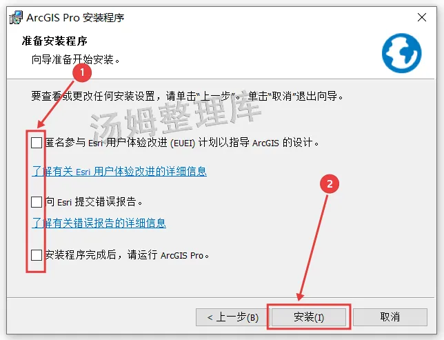 14.先取消勾选三项,然后点击【安装】。