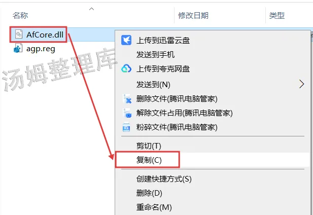 22.选中Crack文件夹内的【AfCore.dll】文件,鼠标右键选择【复制】。