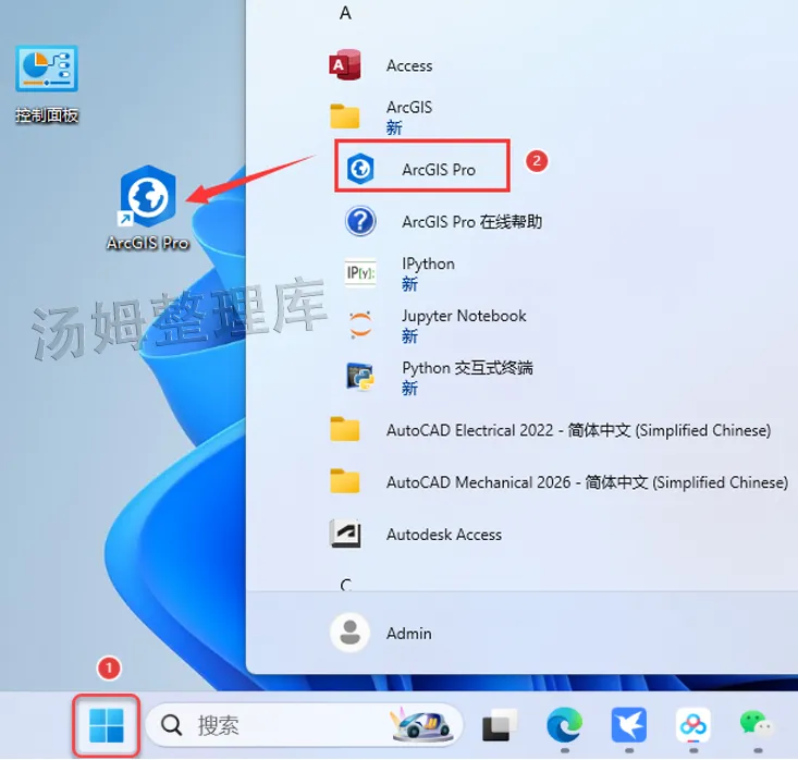 23.创建ArcGIS Pro桌面快捷方式:点击桌面【开始菜单栏】,找到【ArcGIS Pro图标】,选中直接拖动到桌面上即可创建成功。