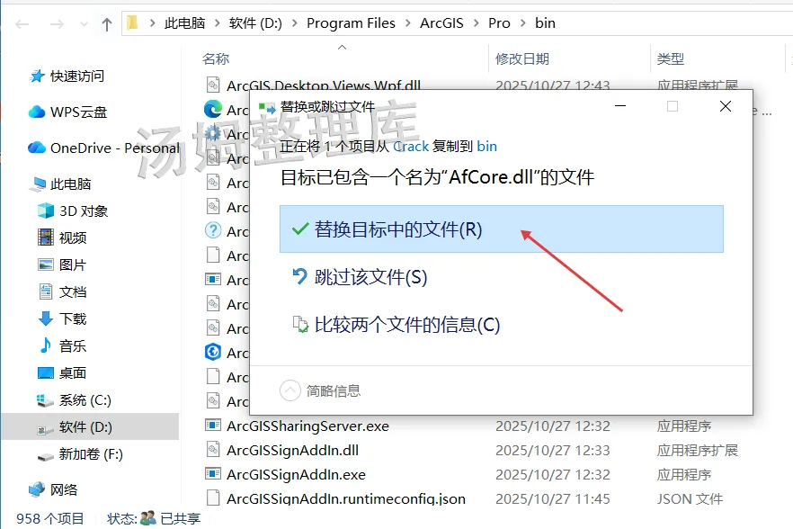 26.点击【替换目标中的文件】。(若提示需要权限,勾选【为所有...】,点击【继续】)