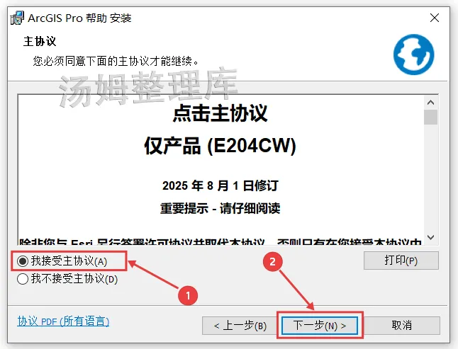 8.先勾选【我接受主协议】再点击【下一步】