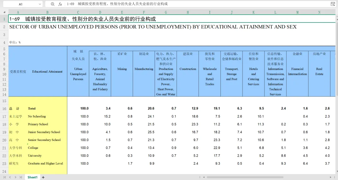 《中国劳动统计年鉴》是由国家统计局主导编制、公开出版发行的权威年度统计资料,是研究我国劳动经济与人力资源领域的核心参考数据资源之一。它系统收录了全国及各省级行政区在劳动就业、工资福利、社会保障、劳动争议等维度的年度数据,既覆盖宏观层面的 “全国就业人员总量、城镇登记失业率” 等核心指标,也包含中观层面的 “分行业就业人员结构、分地区平均工资”,还细化到微观维度的 “国有单位 / 集体单位 / 私营单位就业人员分布、不同岗位工资分位值” 等内容。