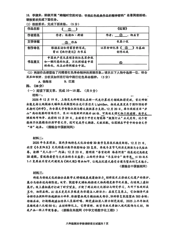 免费下载!最新崇明区2026初三一模各科试卷分享!含答案