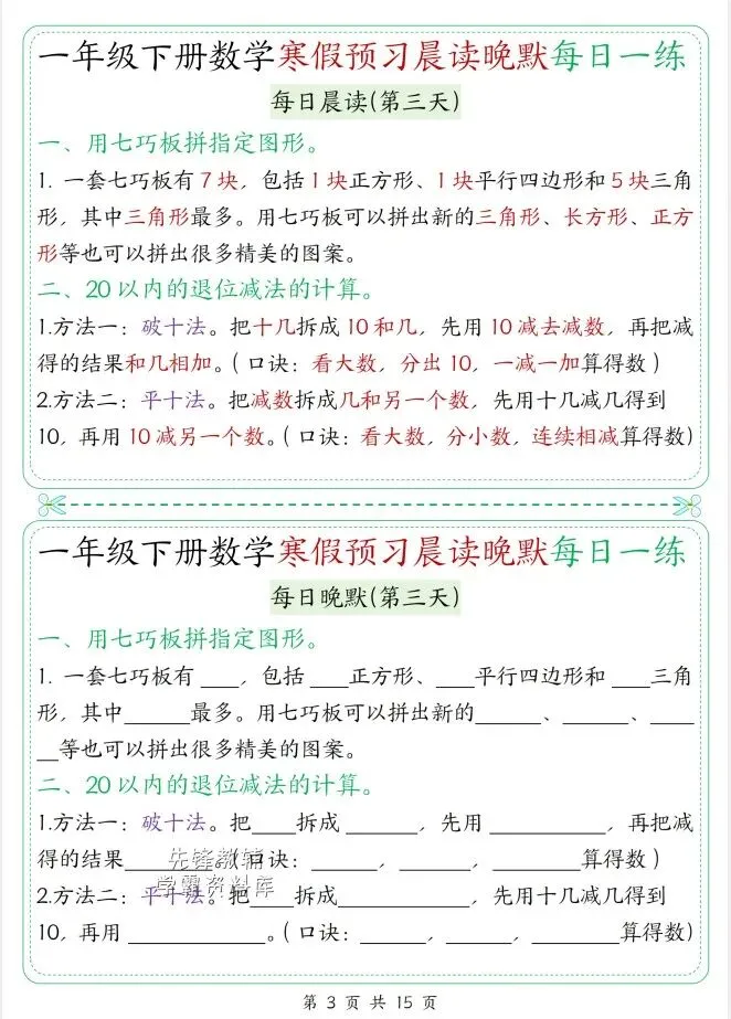 「一年级数学下册寒假预习晨读晚默每日一练.pdf」链接:https://pan.quark.cn/s/d1b057221d98
