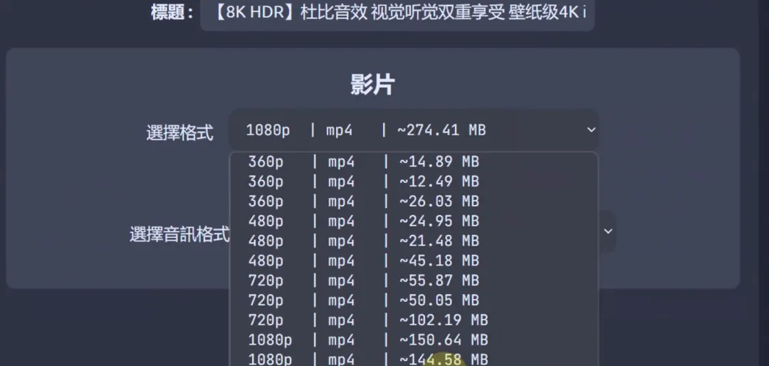 🎬 可选择不同清晰度的视频