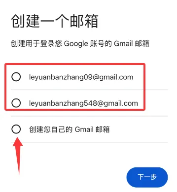 4、可以选一个系统推荐的邮箱地址,或者自己创建一个。